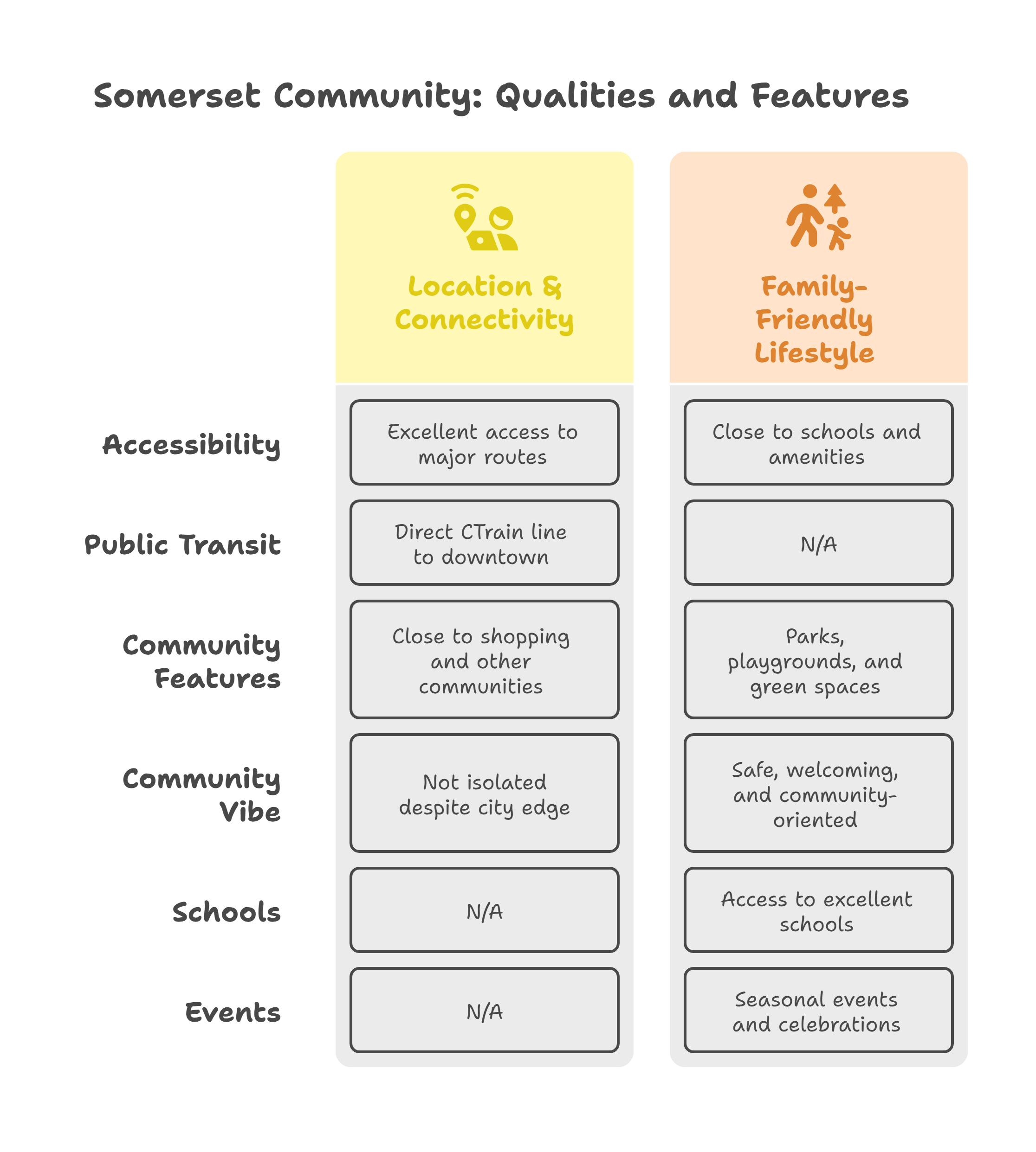Somerset is widely celebrated as a family-friendly community with a safe, welcoming vibe. The neighborhood’s design includes plenty of open green spaces, playgrounds, and winding pathways perfect for afternoon strolls or kids learning to bike. At the heart of the community, Somerset Park features a popular spray water park and splash pad that is a summertime favorite for young families, as well as playgrounds, volleyball and tennis courts, and baseball diamonds. Residents describe the area as very safe and peaceful – ideal for raising children or enjoying a tranquil retirement. Families have access to excellent schools (Somerset School serves elementary grades in the community, with additional public, Catholic, and private schools in adjacent areas). Community spirit is strong here: local residents participate in seasonal events, neighborhood clean-ups, and even use nearby Spruce Meadows facilities for annual celebrations. The close-knit, community-oriented lifestyle in Somerset truly sets it apart as a premier choice for families in Calgary’s SW.